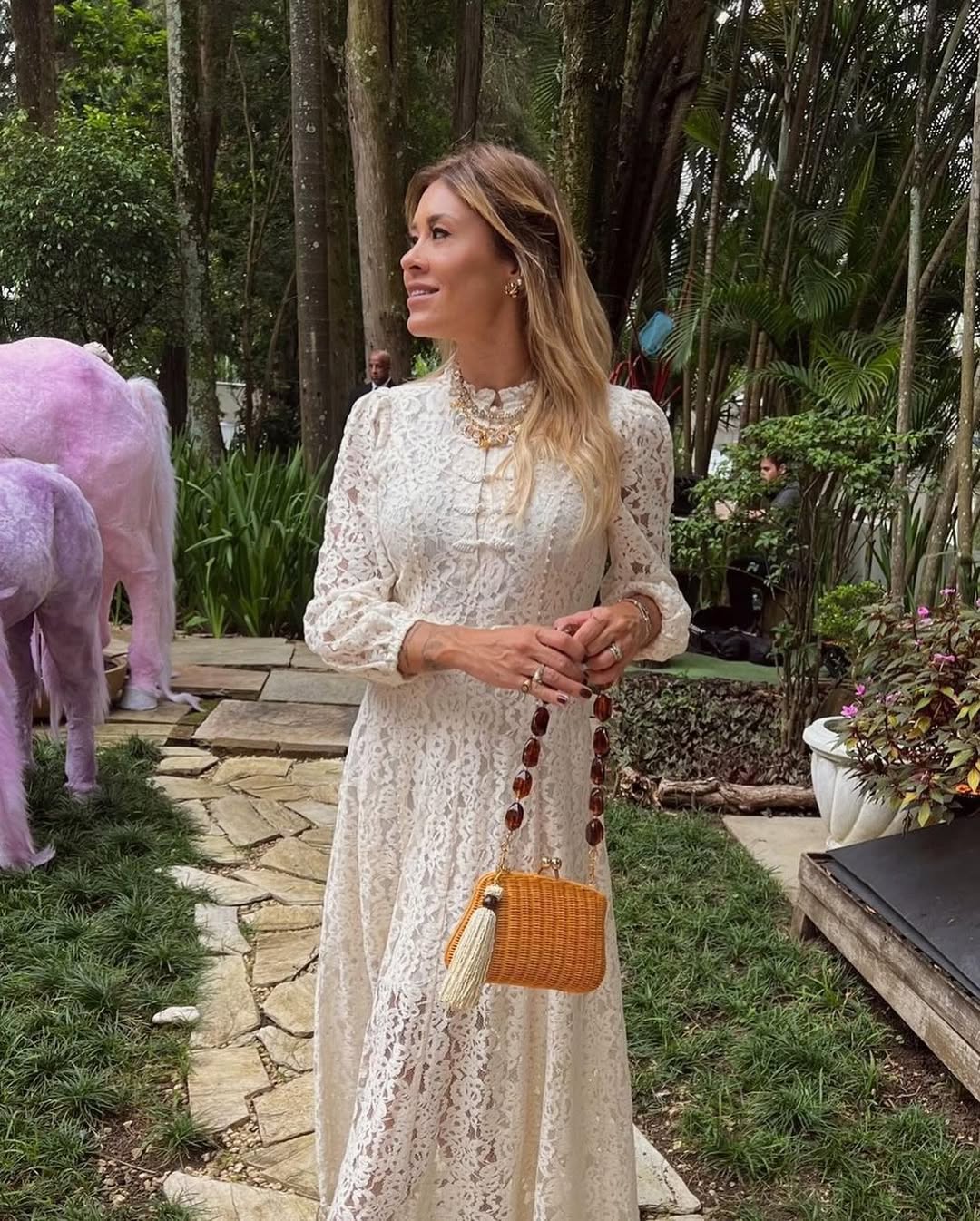 Clutch Blair Light Honey de vime natural com trama fechada. Forro em poliéster. Fechamento magnético por encaixe. Acompanha duas alças removíveis: uma de pedras brasileiras e outra transversal de couro.