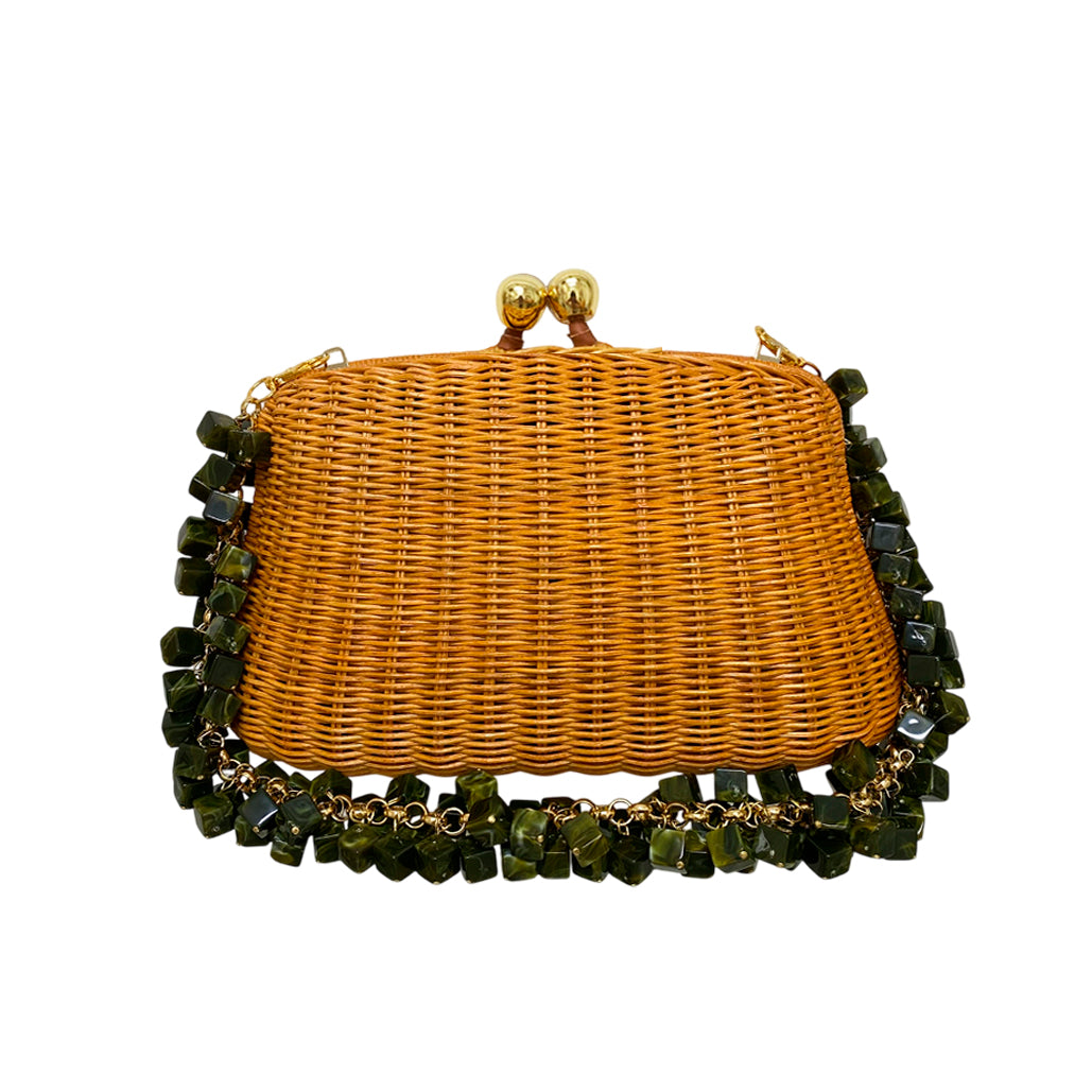 Clutch Blair Light Honey de vime natural com mistura de tramas. Forro em poliéster. Fechamento magnético por encaixe. Acompanha duas alças removíveis: uma de pedras brasileiras e outra transversal de couro.