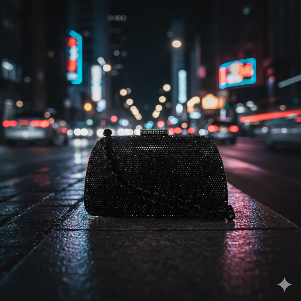 Clutch Josephine Black com aplicação de cristais preto. Forro em veludo. Fechamento magnético por encaixe com cristais aplicados. Acompanha duas alças removíveis: uma transversal em corrente e outra de ombro de cristais.