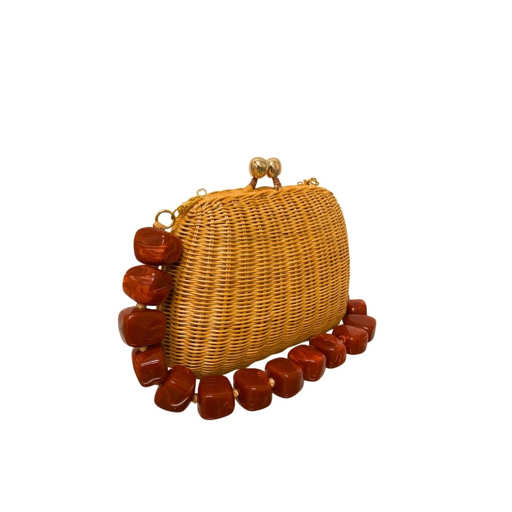 Clutch Lolita Light Honey em vime natural com trama fechada. Forro em poliéster. Fechamento magnético por encaixe. Acompanha duas alças removíveis: uma de resina e outra transversal de couro caramelo.