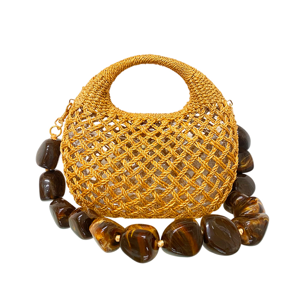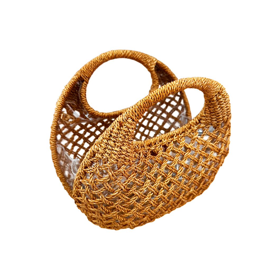 Bolsa Michelle Light Honey estruturada de vime natural com trama fechada e formato arredondado. Forro em poliéster. Fechamento magnético. Acompanha duas alças removíveis: uma de resina e outra de couro caramelo.