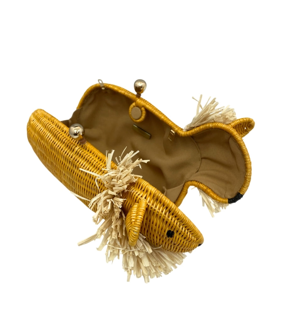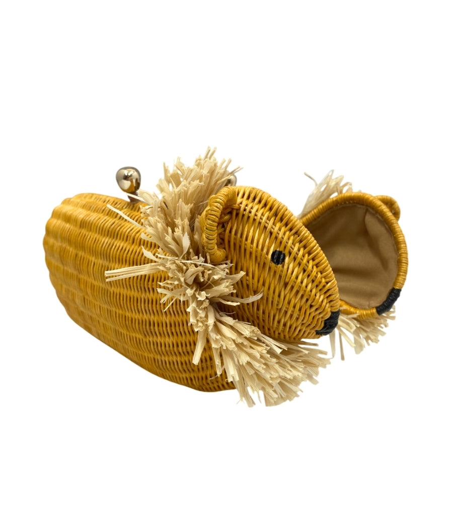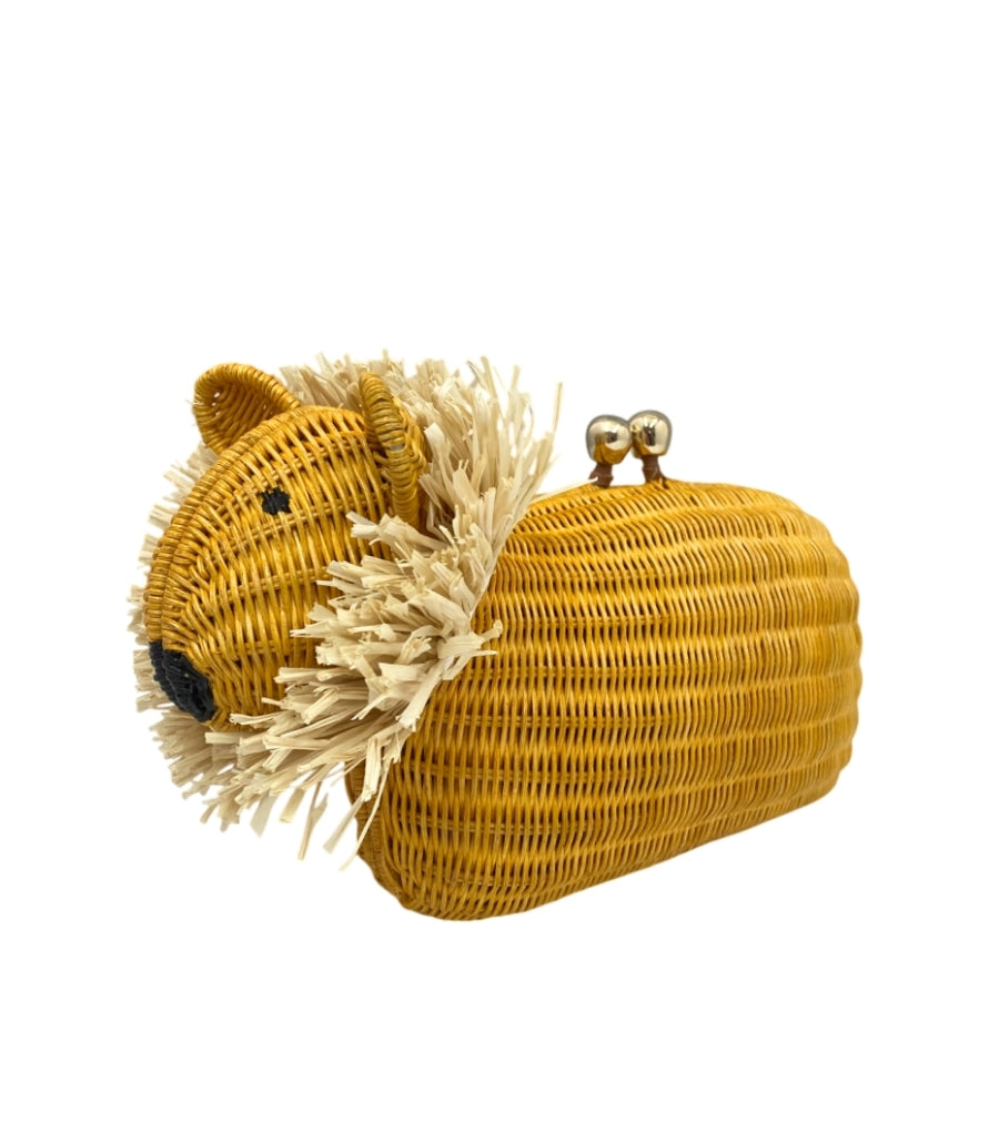 Bolsa Peter Lion OM em vime natural de trama fechada. Forro interno em tecido. Fechamento superior com fecho metálico. Peça artesanal.