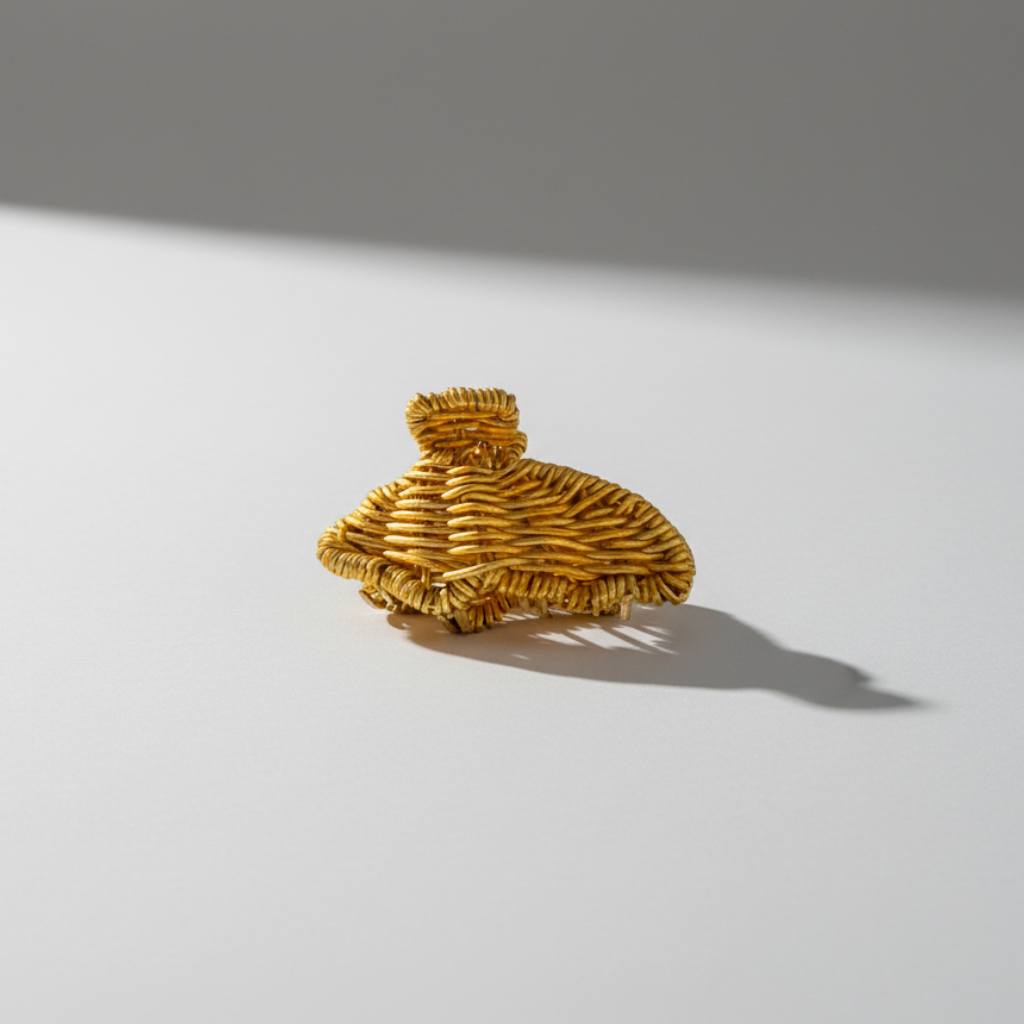 Piranha em vime natural, formato orgânico e tamanho médio. Garra em metal dourado.