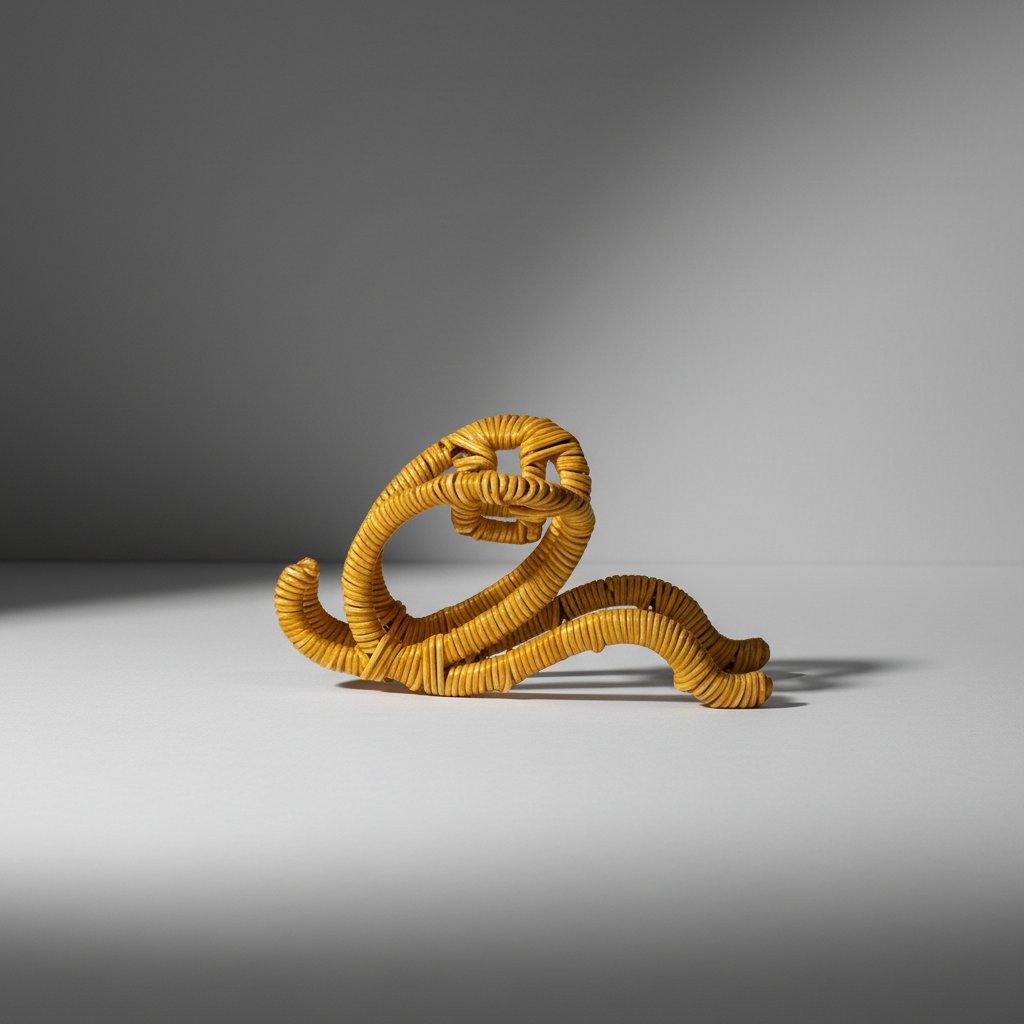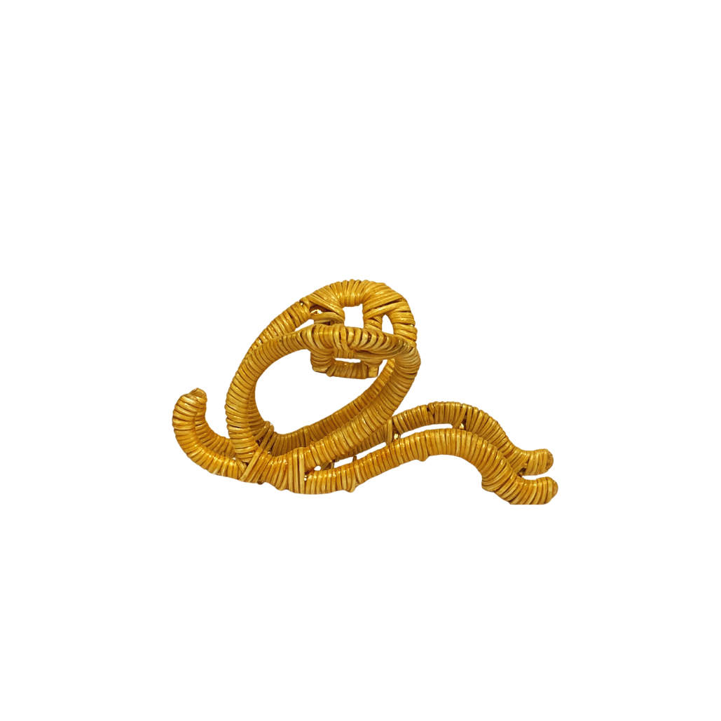 Presilha em vime natural, formato orgânico e tamanho grande. Garra em metal dourado.