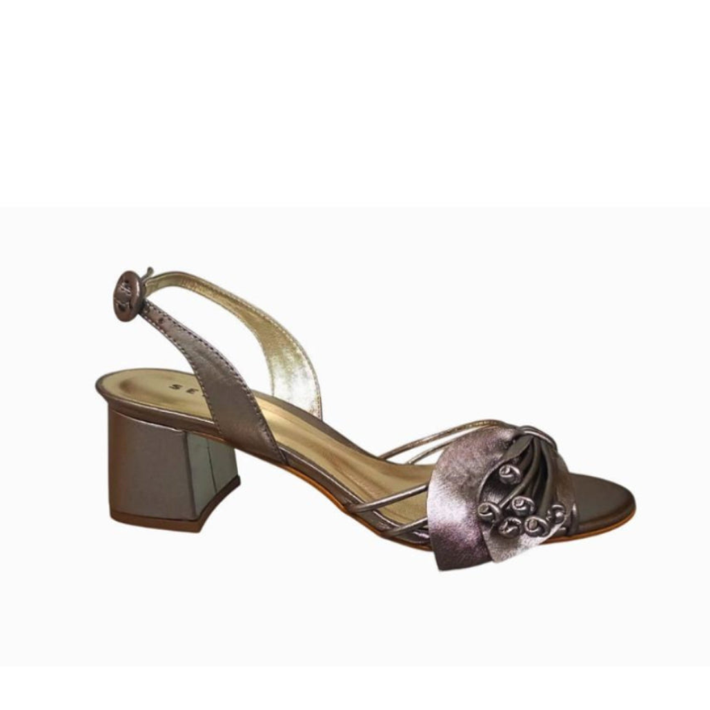 A sandália Sofya combina delicadeza e conforto em um só modelo. Com salto bloco médio, traz estabilidade sem abrir mão da sofisticação. Seu cabedal em couro metalizado é adornado por um detalhe drapeado com apliques. Versátil, é a escolha ideal para ocasiões especiais ou para dar um toque refinado ao look do dia a dia.