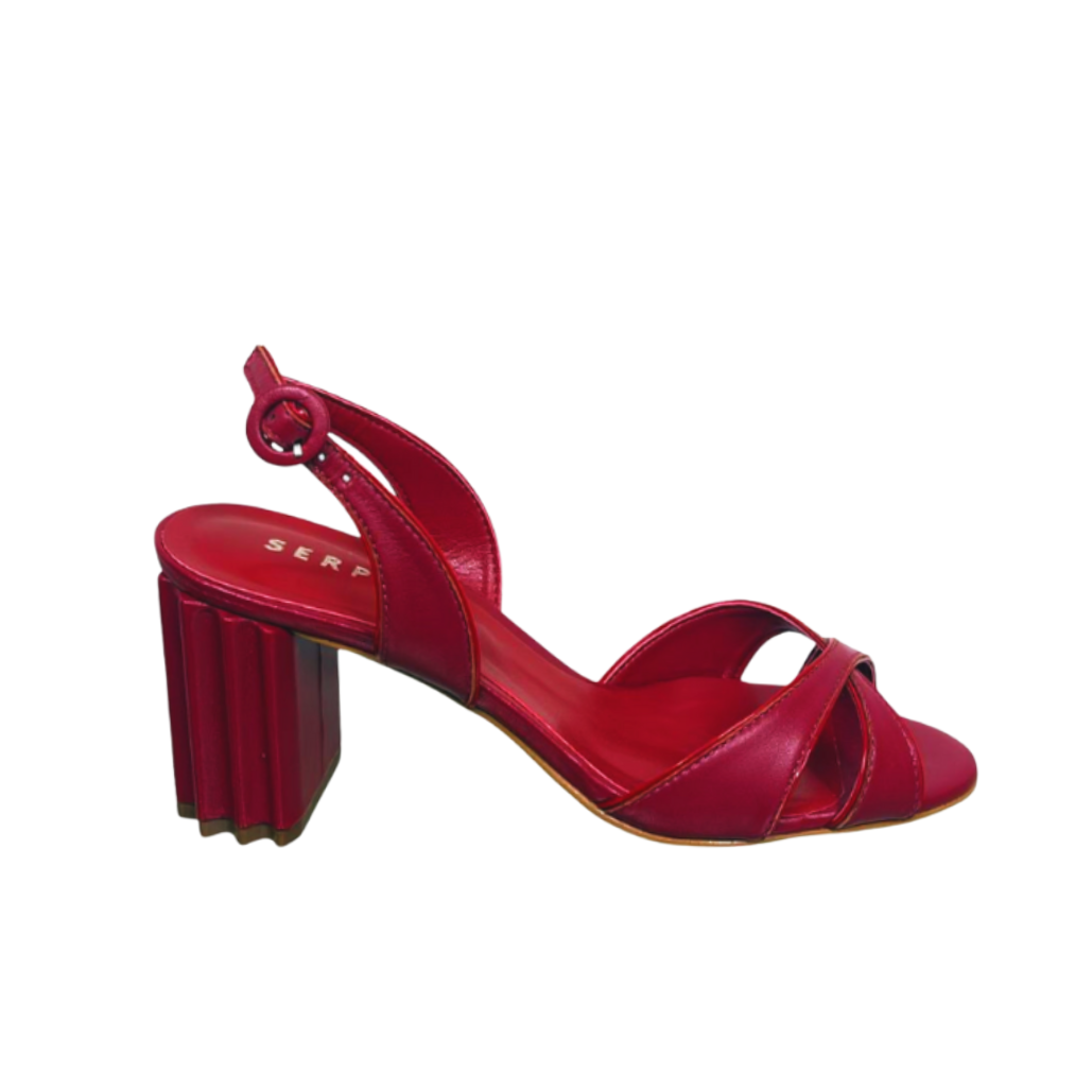 A Sandália Valentina traduz modernidade e atitude em um design marcante. As tiras cruzadas em couro vermelho envolvem o pé com elegância, enquanto o salto bloco esculpido adiciona um toque arquitetônico e contemporâneo. O fechamento delicado no tornozelo garante conforto e ajuste perfeito. Um modelo vibrante que une estilo e personalidade em cada passo.
