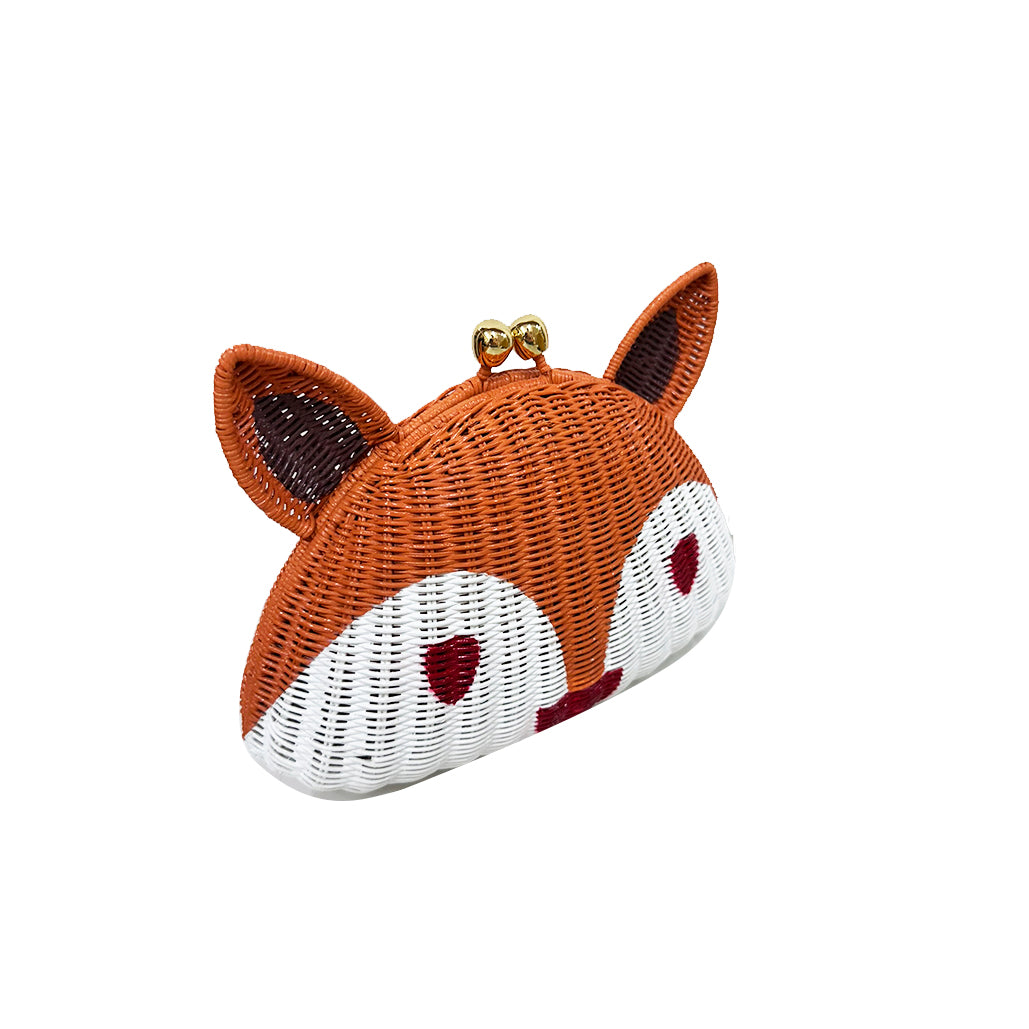 A bolsa Tito Fox em formato de raposa feita em vime natural, com detalhes delicados e acabamento primoroso, é uma verdadeira joia em forma de acessório — divertida, sofisticada e irresistivelmente única. Fechamento magnético por encaixe com acabamento dourado. Acompanha alça longa de corrente de metal.